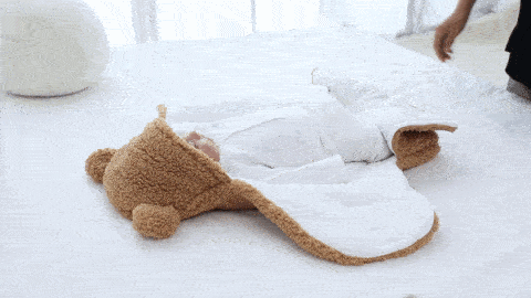 Seja cochilando em um berço, fora em um carrinho de criança ou abraçado em seus braços, o bebê permanece quente e confortável.